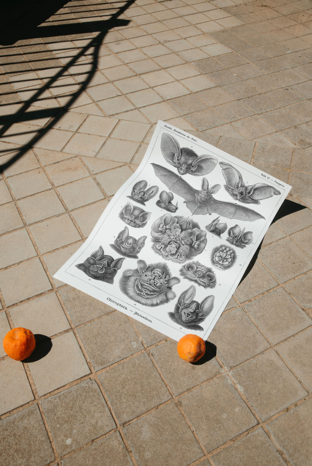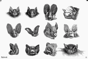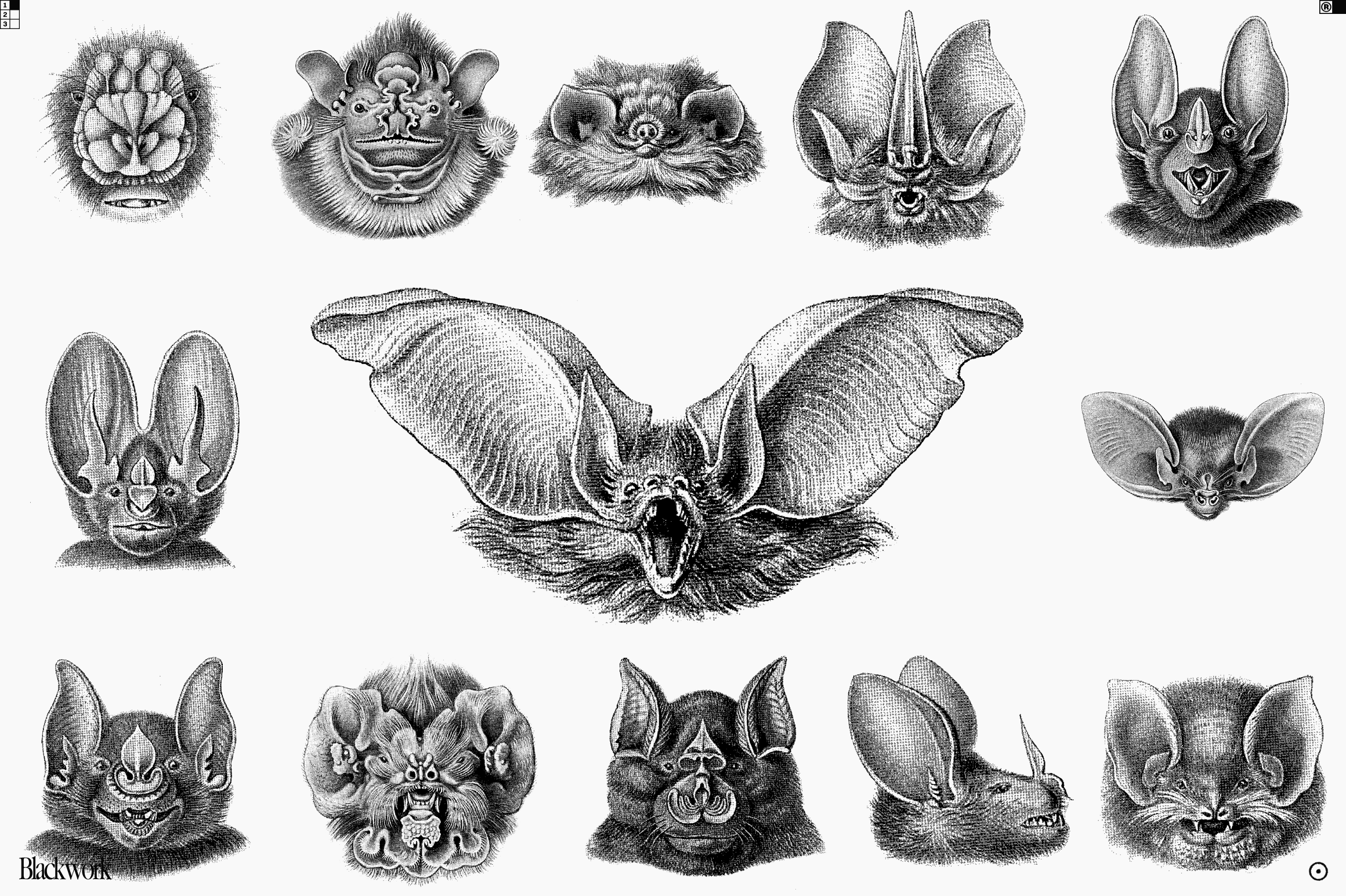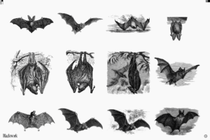 A curated set of 40 restored engravings of bats from different species, ready for print and digital use.